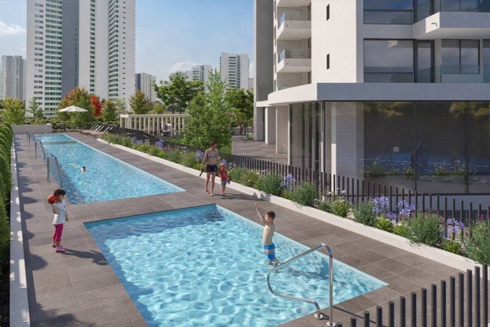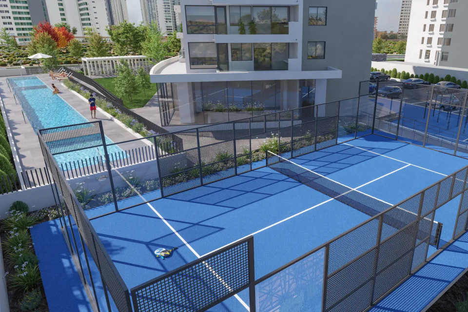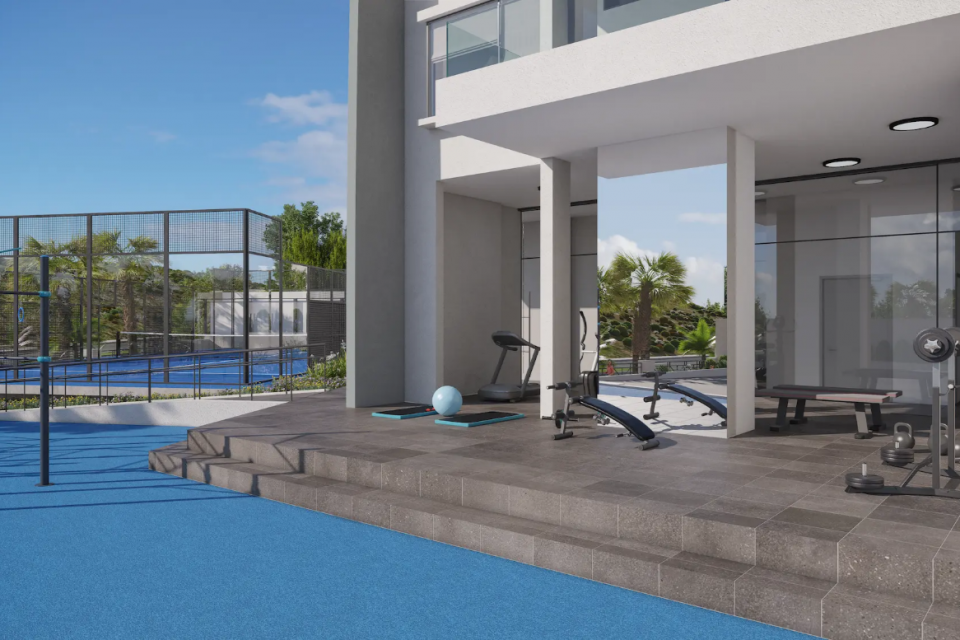 - Резидентам доступны: тренажерный зал в помещении и на открытом воздухе, детская площадка, корт для падел-тенниса, круглогодичный бассейн с подогревом, отдельный бассейн для детей, зона отдыха на крыше, терраса для барбекю, коовркинг и др.
