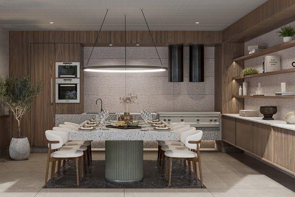 - Для резидентов на территории комплекса созданы различные удобства: открытый бассейн, спортивный зал, терраса для барбекю, лаунж-зона, конференц-зал, игровая площадка для домашних животных, станция для зарядки электромобилей, велосипедная парковка и др.