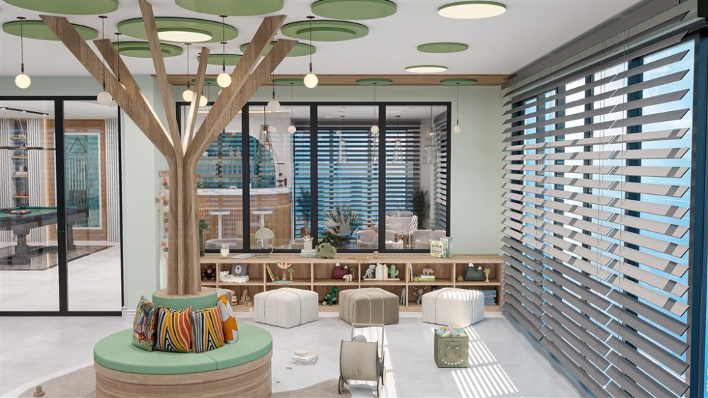 Комплекс находится всего в 900 метрах от пляжа. Рядом с ним расположены крупные торговые центры Yekta Mall и Akdeniz Park AVM, а также множество магазинов, ресторанов и кафе. Его расположение обеспечивает идеальный баланс между спокойным, зеленым окружением и близостью к развитой городской инфраструктуре.