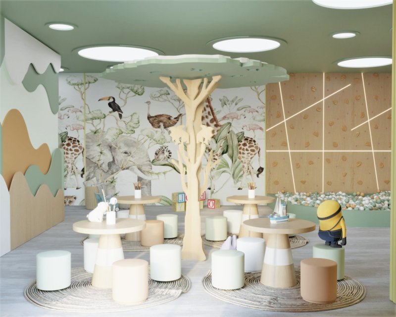 - Социальные зоны: Ресепшн, лобби, взрослые и детские игровые комнаты, конференц-зал и кинотеатр.