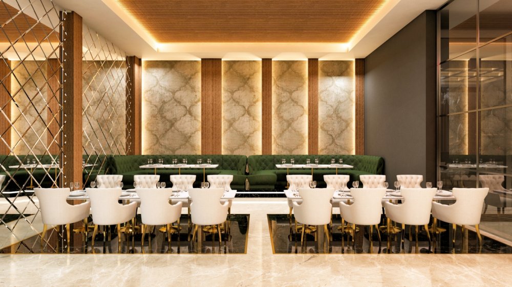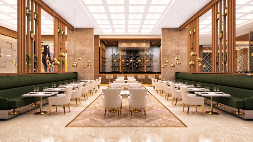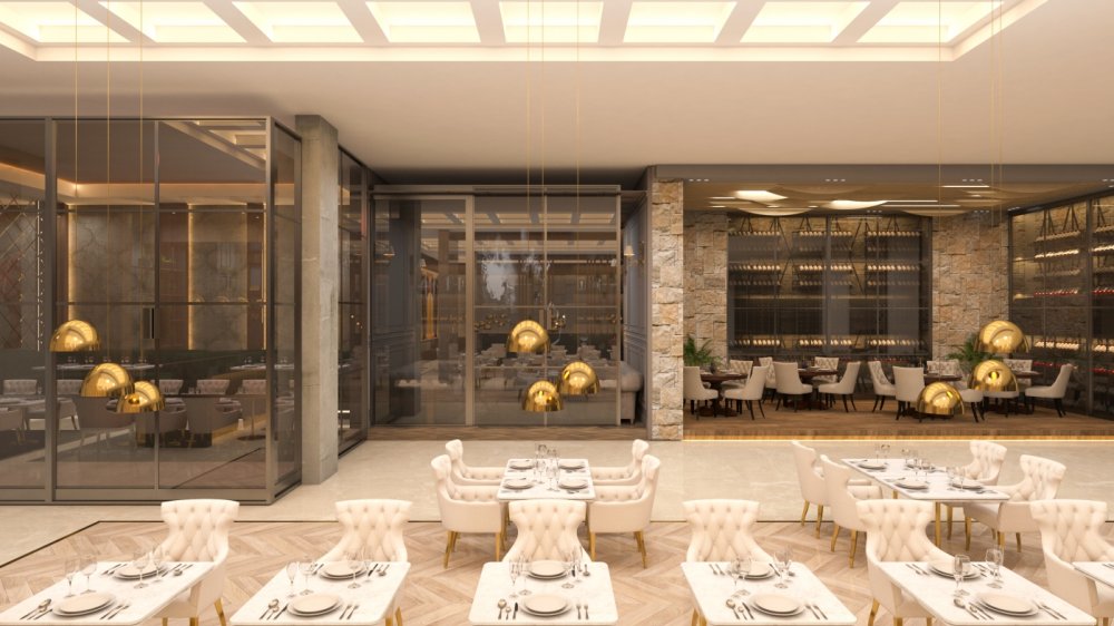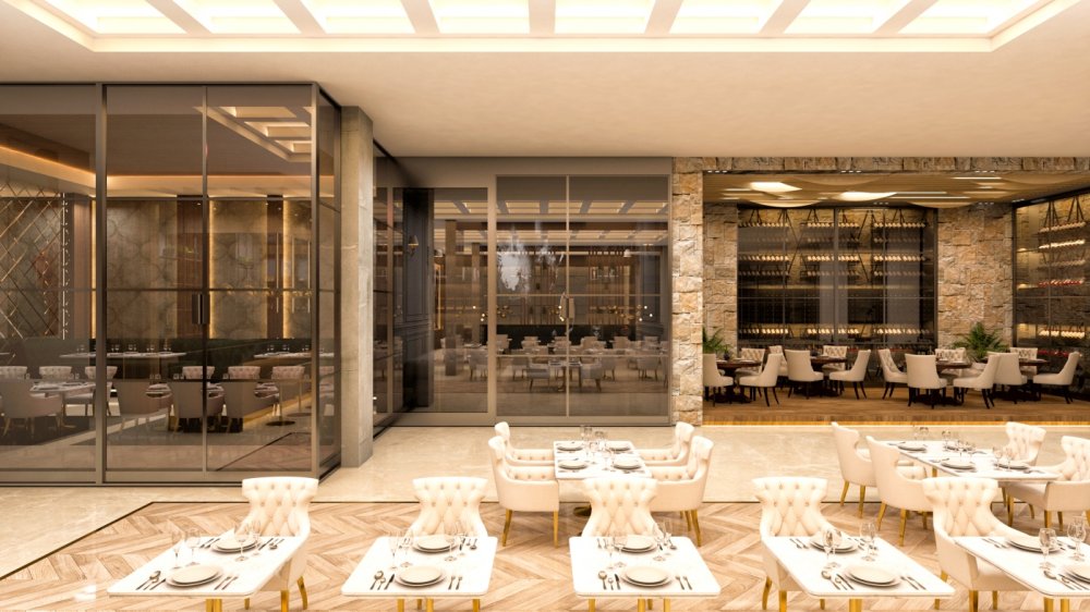 - Социальные зоны: ресторан, караоке-бар, сигарный и винный залы, беседки и зоны для BBQ.