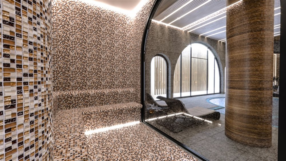 - Жителям комплекса доступна полноценная инфраструктура: открытые и крытый бассейны, аквапарк, турецкий хаммам, финская сауна, фитнес-зал, детская игровая площадка, круглосуточное видеонаблюдение, парковка и электрогенератор.