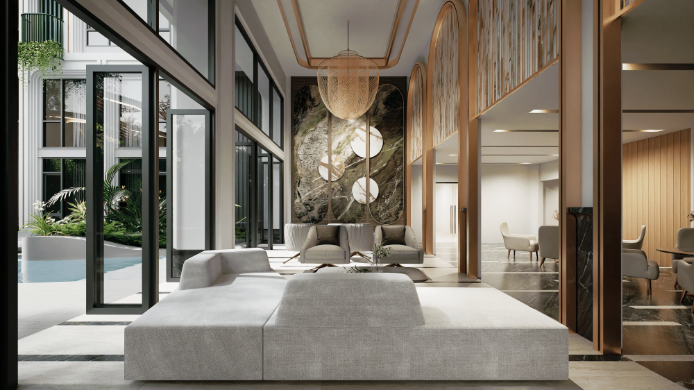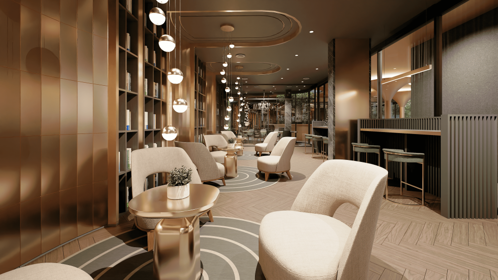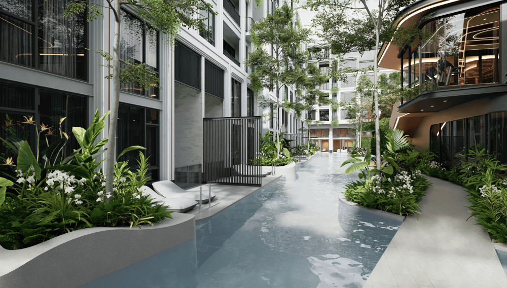 Удобства в комплексе будут включать бассейн, спа, рецепцию и сауну.