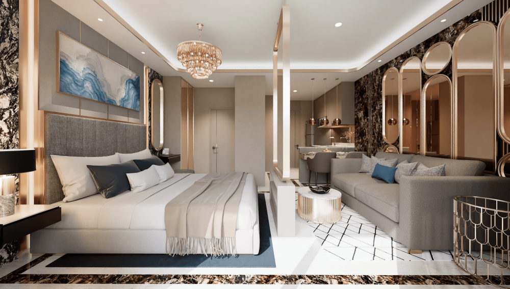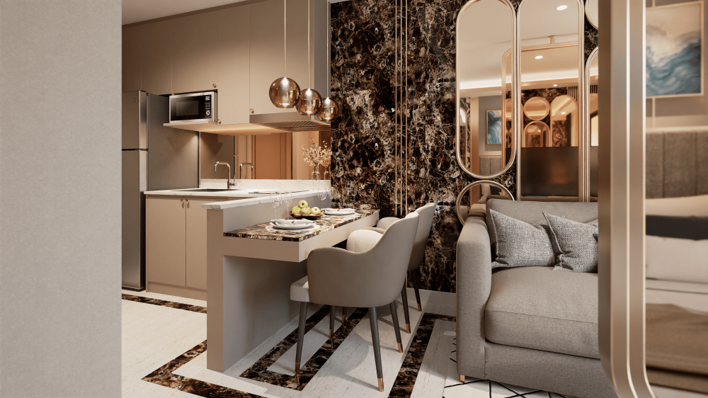 Все апартаменты оформлены в современном стиле и располагают мини-кухней или кладовой, барной стойкой для завтрака или обеденной зоной, комфортабельными спальнями и отдельными балконами в некоторых типах апартаментов.