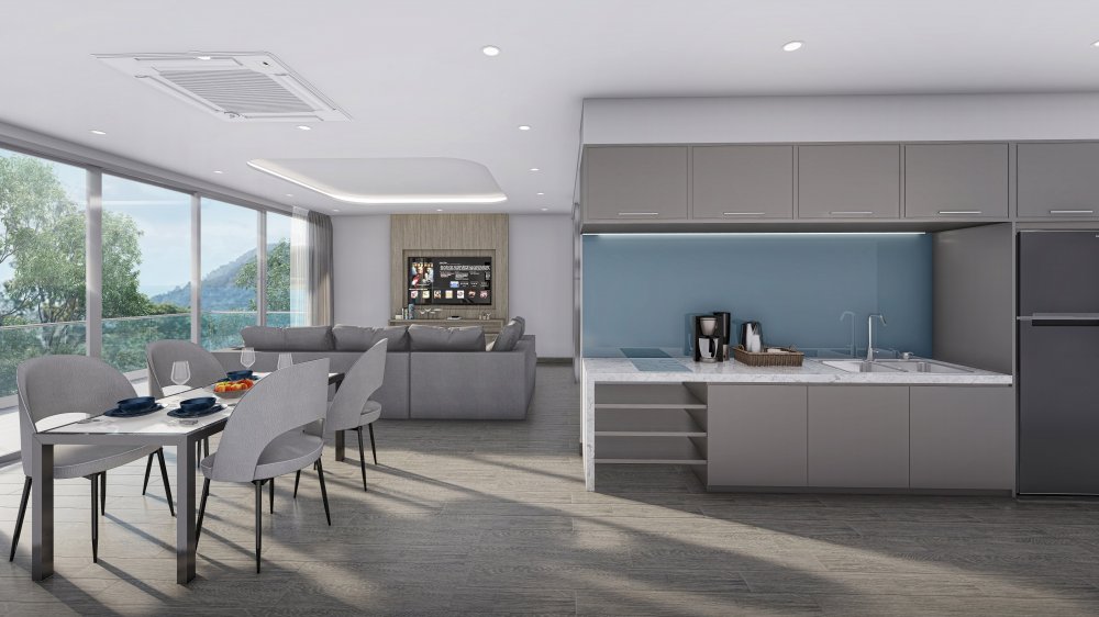 — Интерьеры, пронизанные прохладной элегантностью, демонстрируют чистые линии и современную эстетику. Пространства открытой концепции наполнены естественным светом, создавая уютную атмосферу. Полноценные кухни оборудованы передовой бытовой техникой, а изысканные ванные комнаты оснащены спа-удобствами для абсолютного расслабления.