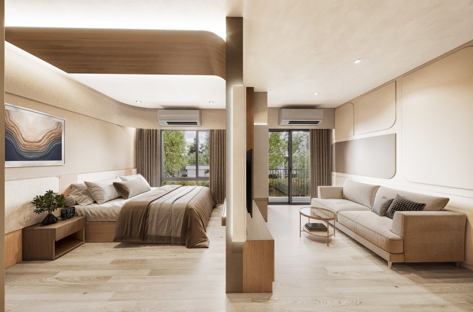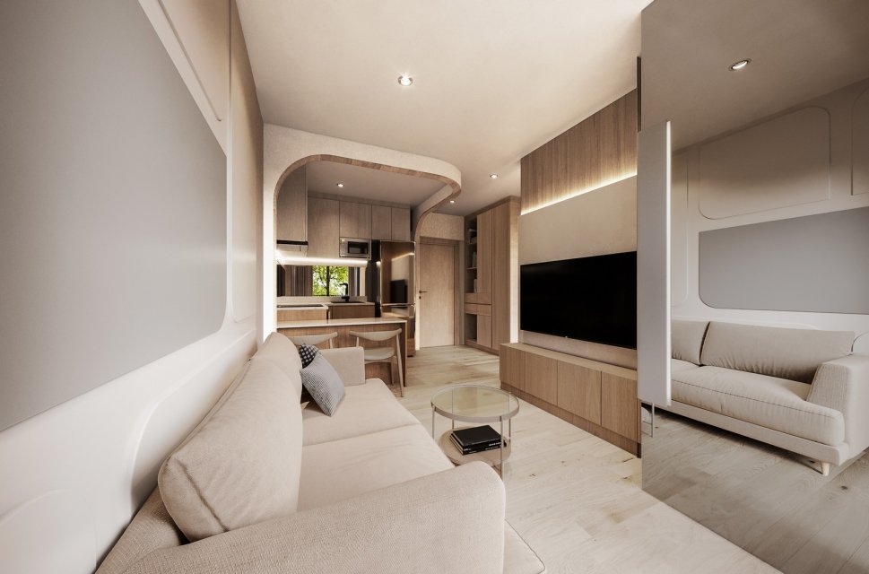Здесь представлены продуманные планировки — от компактных студий до просторных апартаментов с одной и двумя спальнями площадью от 25,85 до 91,62 кв. м. Каждый юнит спроектирован с вниманием к деталям: встроенные кухни, функциональные жилые зоны, стильные ванные комнаты, высококачественные отделочные материалы и современный интерьер создают атмосферу, в которой хочется жить, творить и наслаждаться каждым днём.