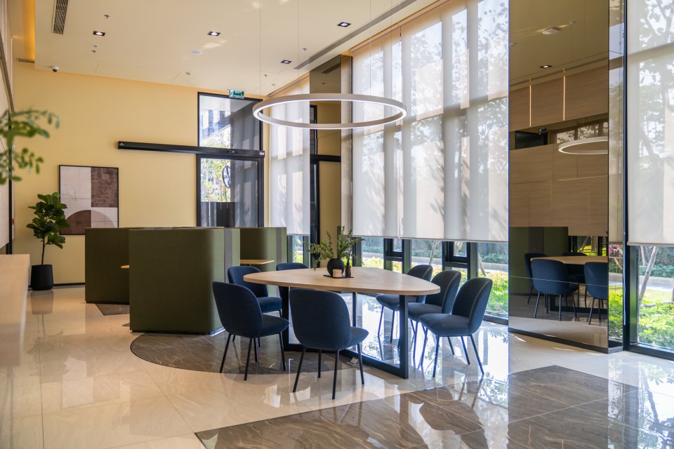 5-уровневая зона общих удобств включает: зеленые зоны (Garden Pavilion, Sensory & Greenery Park), беговые дорожки, лобби и коворкинг-зоны, Grab & Go станцию и снек-станцию, прачечную и EV-зарядку .