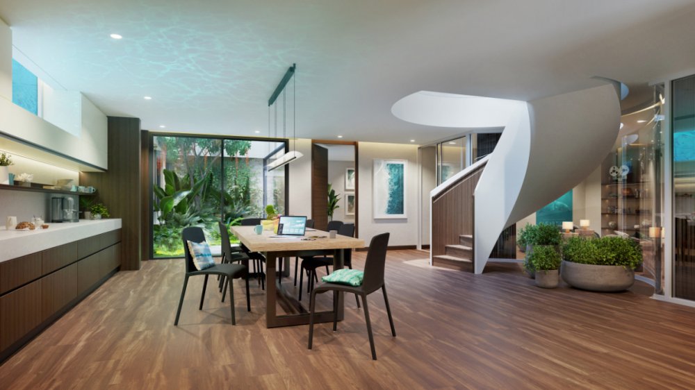 — Дизайн интерьеров идеально сочетается с просторными планировками. Светлые оттенки бежевого, кремового и песочного цветов дополнены натуральным темным деревом, стеклянными панелями и живой изгородью по периметру. Вместе это создает ощущение приватного сада, на выходе из которого открывается прямой путь на пляж Банг-Тао.