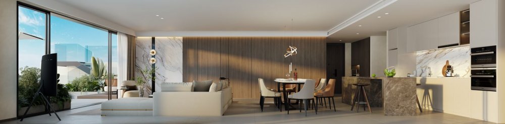 Апартаменты в комплексе тщательно спроектированы для оптимизации естественного освещения и использования пространства, с тщательным вниманием к архитектурным элементам и отделке, создающим атмосферу изысканности и современности.