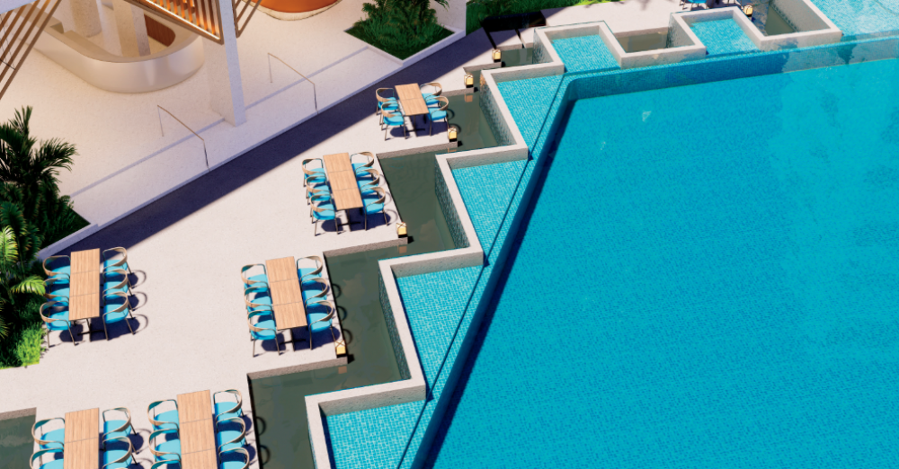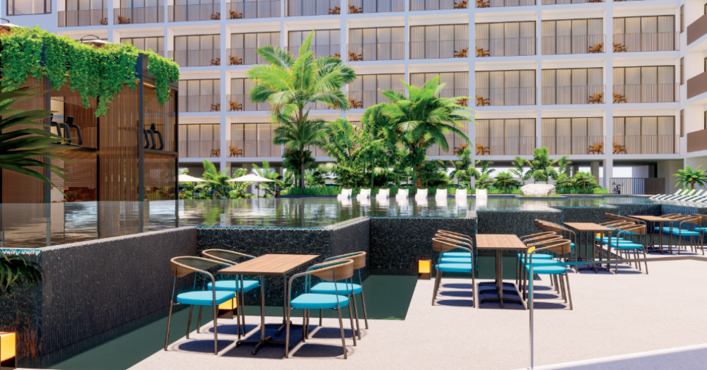 Комплекс состоит из 3 восьмиэтажных зданий. Посередине расположен огромный бассейн с зонами отдыха.Также здесь есть большой ресторан в стиле юго-восточной Азии, ко-воркинг пространство для комфортной работы и ведения переговоров, тренажерный зал, кафе, лобби.