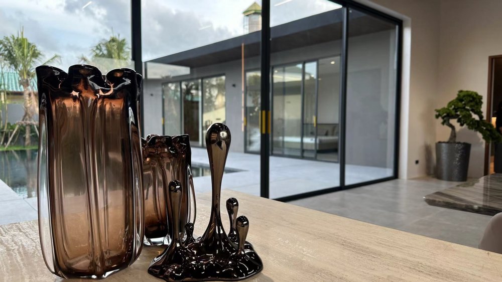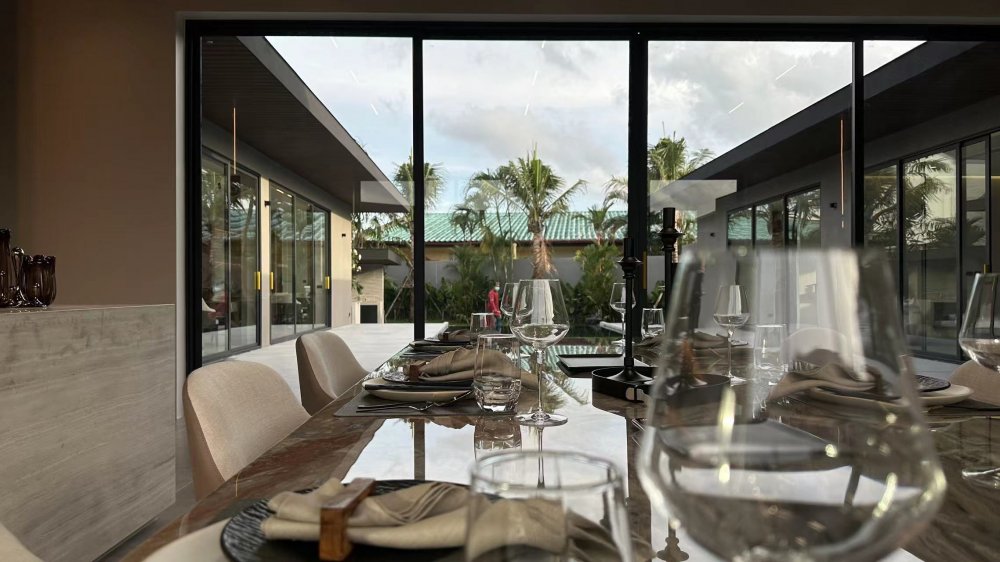 В комплексе всего шесть просторных вилл с частными бассейнами, каждая из которых расположена на участке площадью от 612 до 762 кв. м. Архитектура домов выполнена в U-образной планировке: центральным элементом является 12-метровый бассейн, окружённый солнечной террасой для отдыха. Внутри — четыре спальни с ванными комнатами, включая две мастер-спальни, а также гостиная и столовая в едином пространстве с современной западной кухней, островом и барной стойкой.