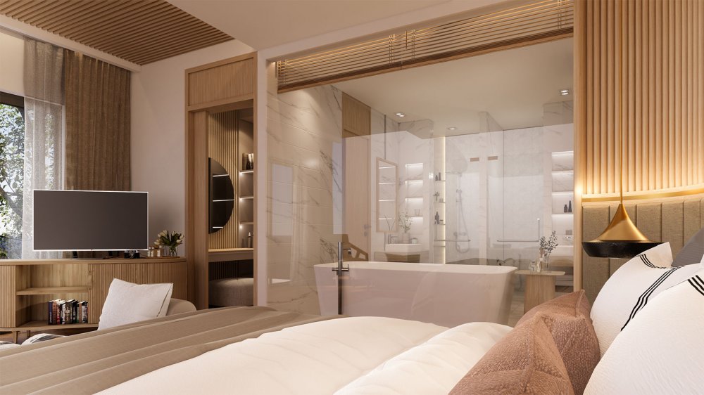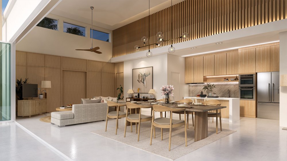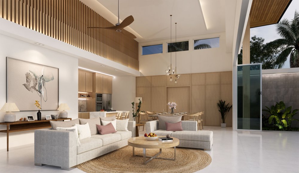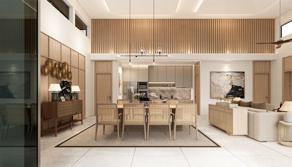 Каждая вилла может похвастаться современным роскошным архитектурным стилем, отличающимся плавными линиями, функциональностью и открытой концепцией жилых помещений. Интерьеры тщательно продуманы, чтобы обеспечить плавный переход между внутренними и наружными зонами, обеспечивая обилие естественного света и ощущение простора. Каждая деталь была тщательно продумана, чтобы создать гармоничный баланс между эстетикой и практичностью.