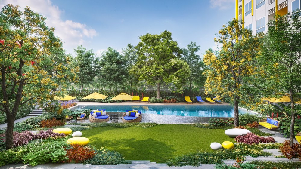 — Для резидентов созданы уникальные пространства отдыха: многофункциональная зона на первом этаже, фитнес-зал, бассейн и ландшафтный сад.