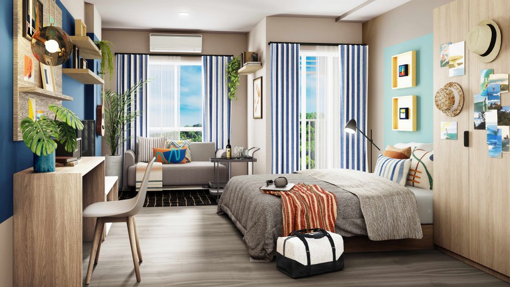— Яркий дизайн интерьеров с цветовыми акцентами в стиле нью-эйдж. Плетеная мебель и натуральное светлое дерево добавляют уюта в просторные помещения, делая апартаменты по-настоящему комфортными для постоянного проживания.