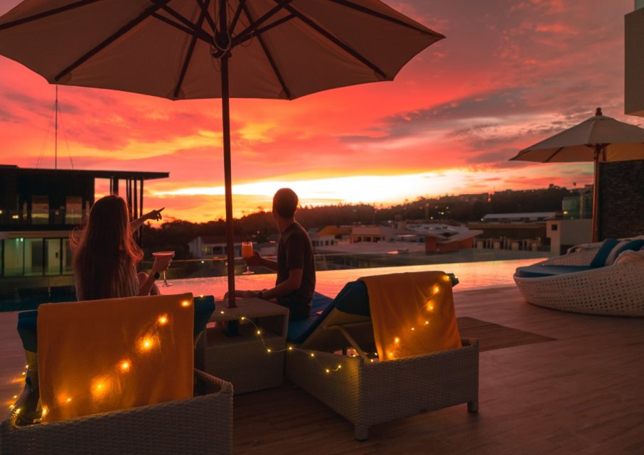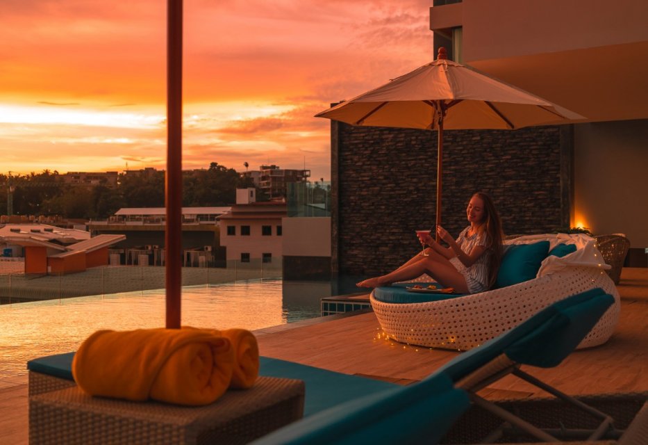 — Пятизвездочный сервис: круглосуточный ресепшен и охрана, бесплатная вода и закуски при заезде, ежедневная уборка, завтраки и трансфер.