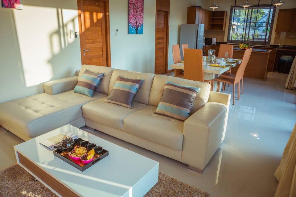 — Коллекция выполнена в современном тайском стиле с использованием золотистых, янтарных и кремовых оттенков. Интерьеры дополнены натуральным деревом, встроенной кухней и дизайнерской мебелью. Каждая резиденция оборудована приватным бассейном и террасой.