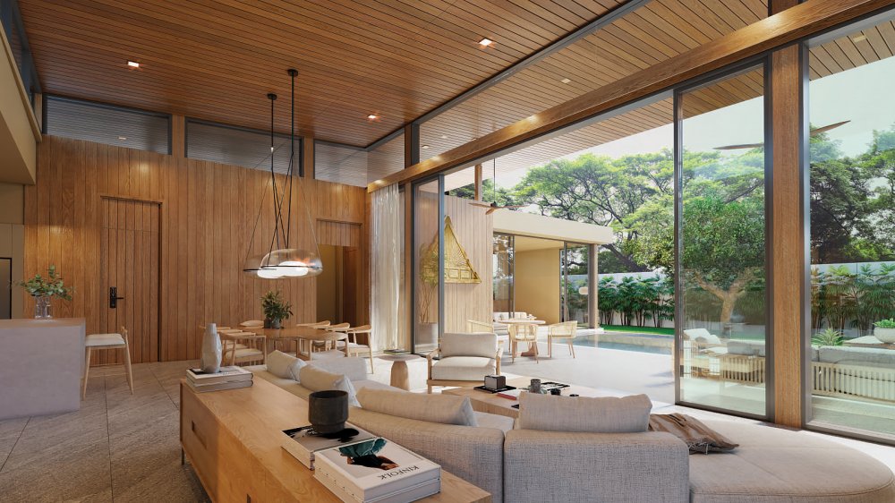 — Концепция, вдохновленная природными формами, светом и тенью, органично сочетает открытые пространства с традиционными японскими элементами, такими как коджи и сёдзи — раздвижные перегородки, которые создают игру света и тени, поддерживая баланс между приватностью и открытостью. В основе лежит идея ваби-саби, где ценится красота несовершенства, а естественные материалы, такие как дерево и камень, отражают связь с окружением. Террасы энгава плавно соединяют внутренние помещения с окружающим ландшафтом, позволяя дому дышать вместе с природой.