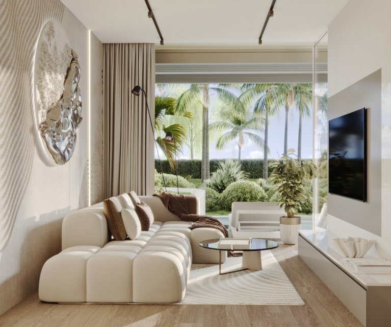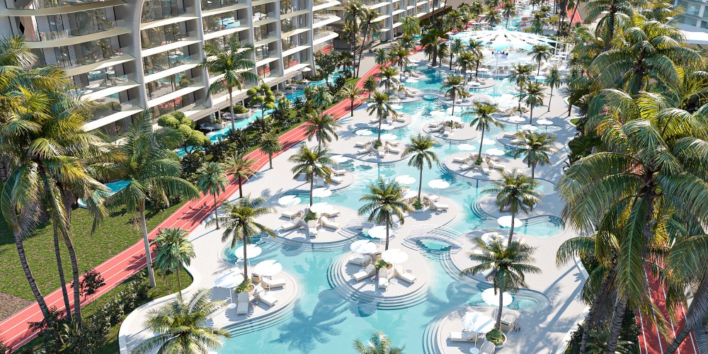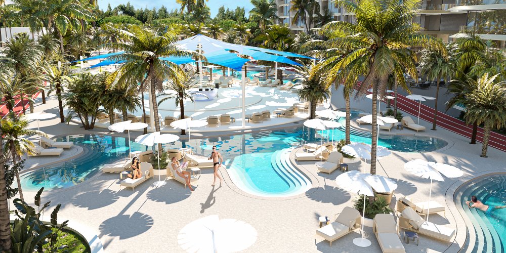 Новый проект Atrium представляет собой 2 корпуса, по 140 квартир в каждом. Здания будут соединены террасой. Общая зона также включает в себя ресторан на нижнем этаже и на крыше, лобби, коворкинг, бар, зону для лежаков и бассейны.