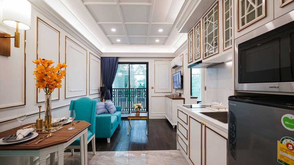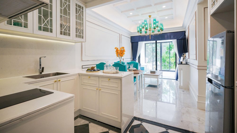 — Внутренние пространства воплощают элегантный неоклассический стиль с современными акцентами. Мягкие оттенки тиффани в сочетании с мраморным полом и золотыми деталями создают атмосферу утонченной роскоши. Яркие текстильные элементы добавляют глубину, а продуманные декоративные акценты придают пространству индивидуальность и изысканность. В коллекции представлены лоты с просторными террасами, потолками 3,9 и 3,5 метра, приватными бассейнами и джакузи, предлагая планировки на любой вкус.