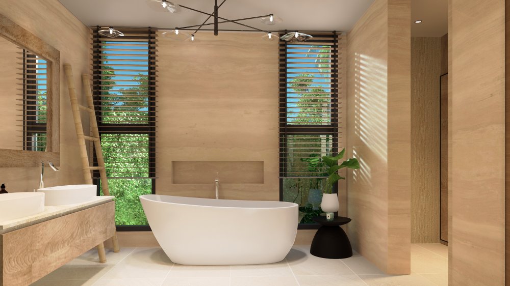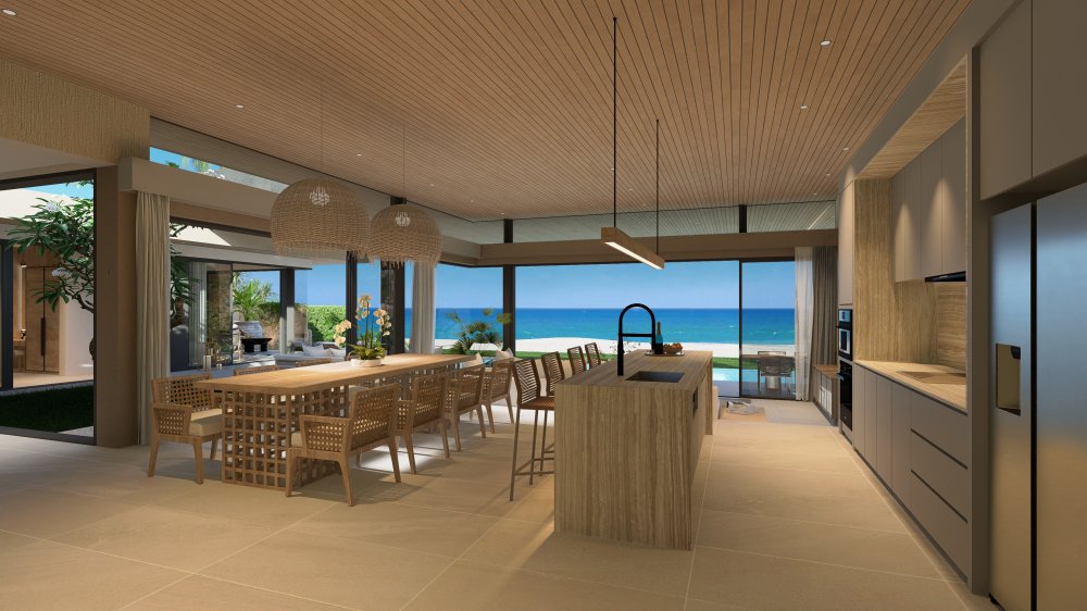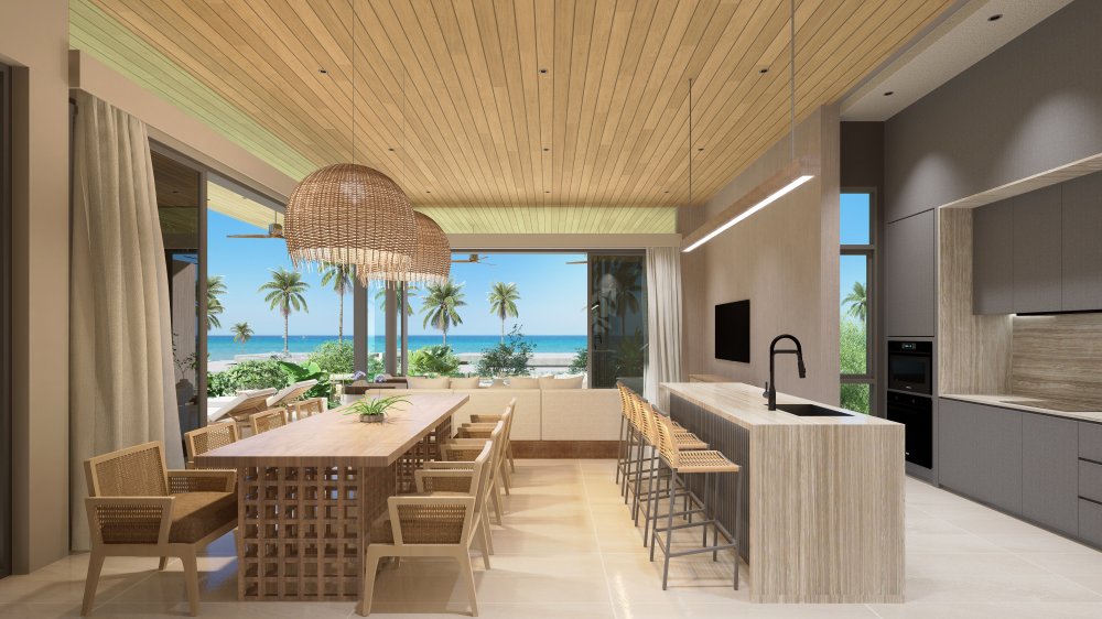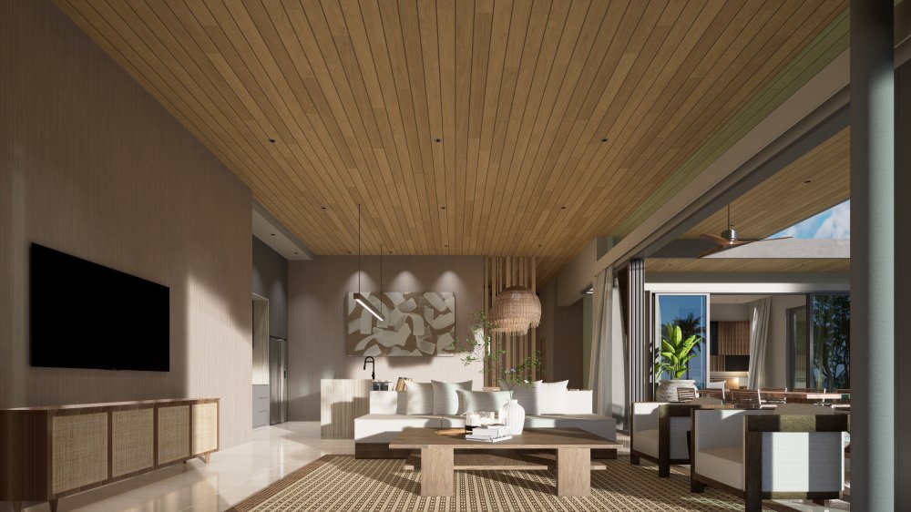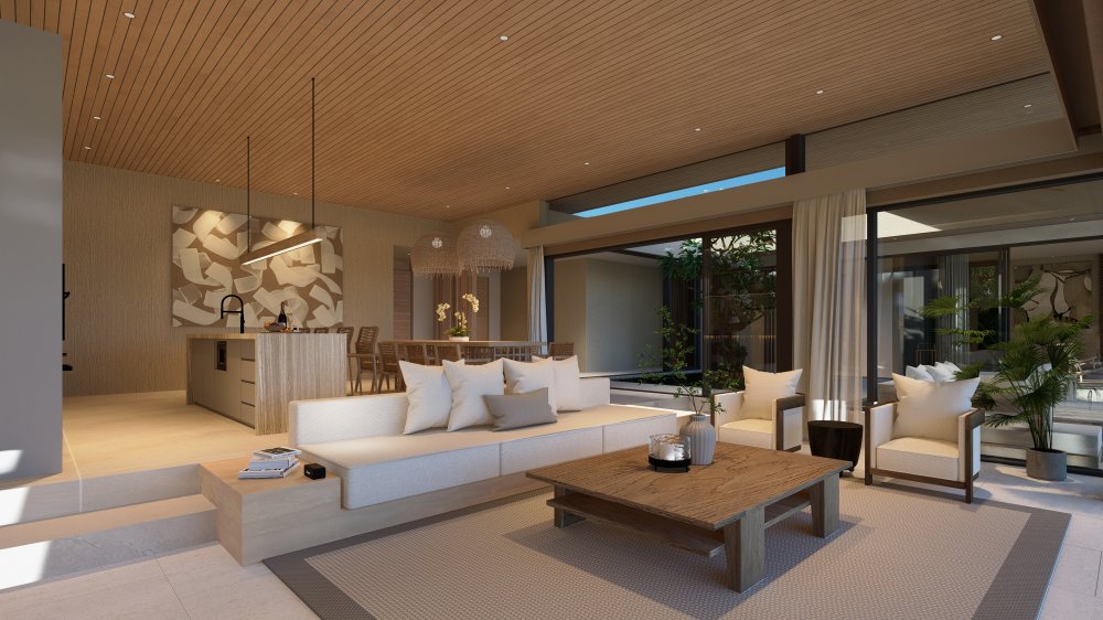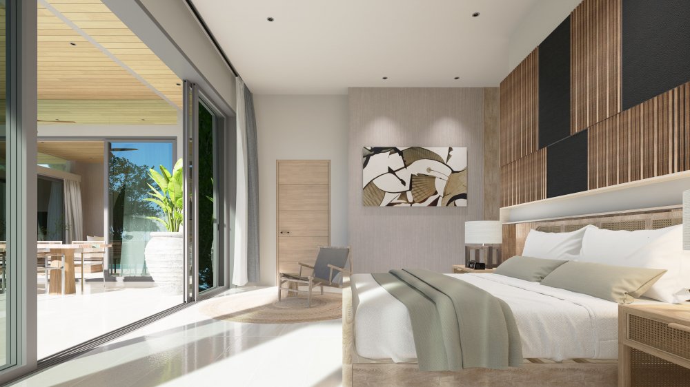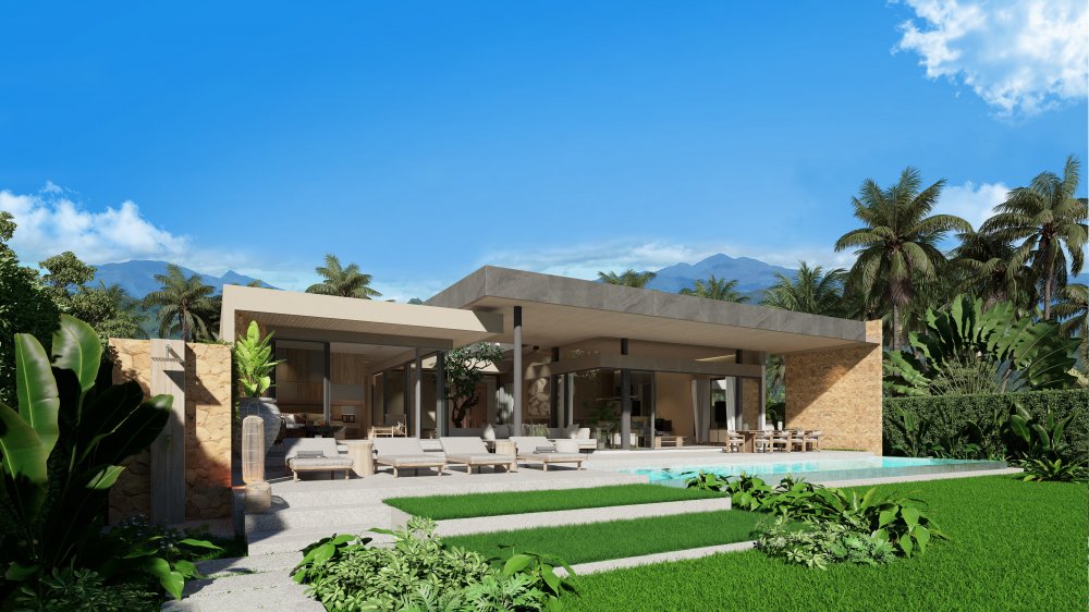 — Комплекс состоит из одно- и двухэтажных вилл, каждая из которых оборудована террасами, частным бассейном с прозрачными бортами, тремя парковочными пространствами и четырьмя просторными спальнями. Интерьеры выполнены в классическом сочетании европейского и тайского декора, с использованием нейтральных карадамоновых, карамельных и изумрудных оттенков, плетеных элементов и натурального дерева.