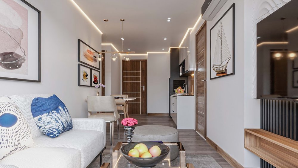 — Футуристический дизайн в стиле модерн с использованием материалов премиум качества. Узоры, напоминающие изгибы волн и песка, продуманные планировки и минималистичный выбор цветов создают в апартаментах неповторимое ощущение уюта и комфорта. Все лоты оборудованы встроенной кухней и меблированы, в части представлены приватные бассейны.