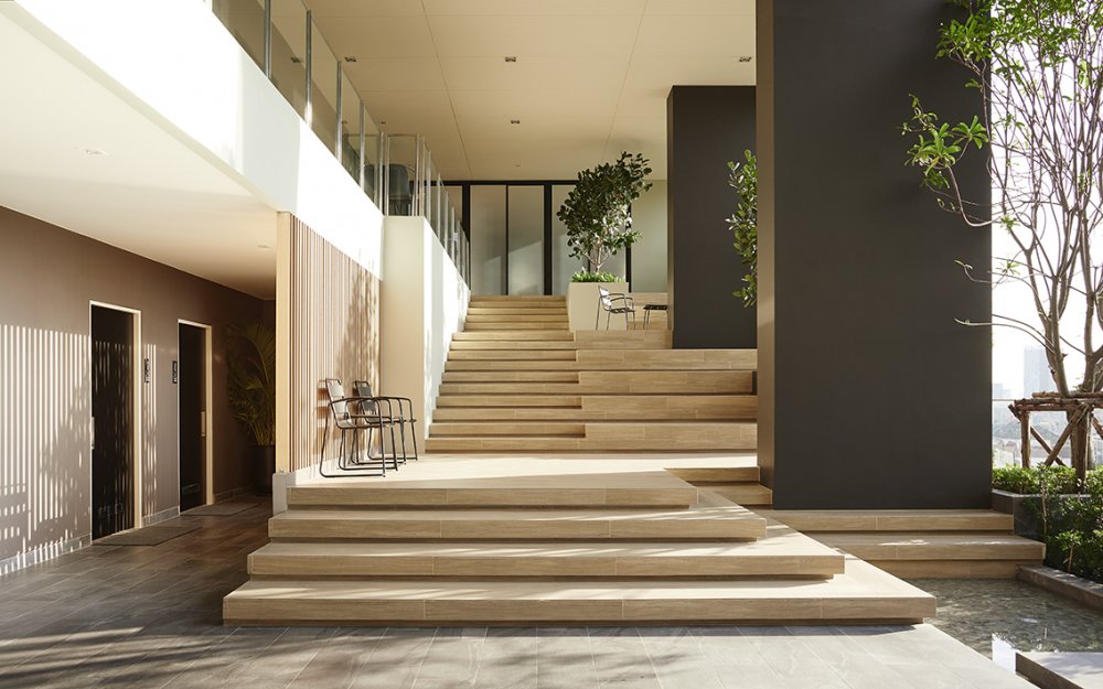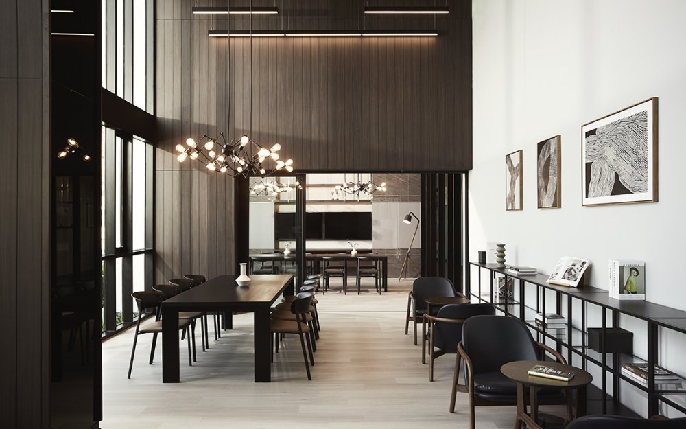 Общие зоны площадью около 3450 м², распределенные по 8 функциональным зонам с современным дизайном и ландшафтами на уровне первого, восьмого этажа и крыши .
