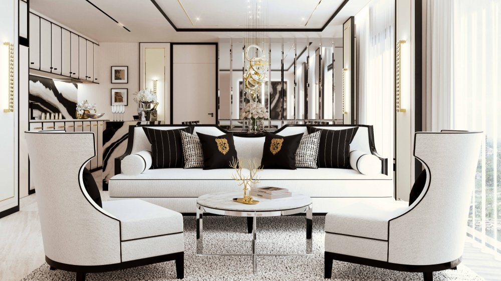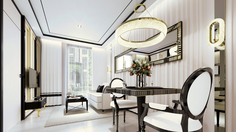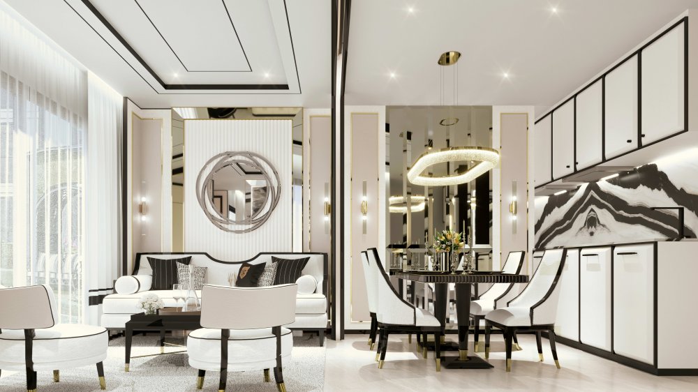 — Романтичный и элегантный дизайн, выполненный в выдержанном французском стиле. Строгие графитовые линии гармонируют со светлыми оттенками и черно-белым мрамором. Вся коллекция лотов полностью меблирована, а кухня оборудована премиальной техникой ведущих брендов.