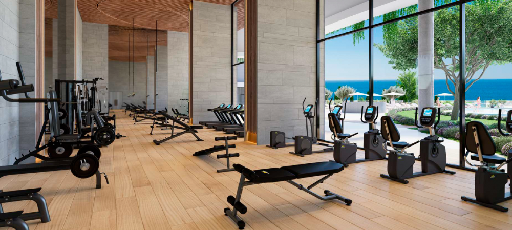 • Фитнес-зал 200 м² с панорамой моря и современным оборудованием