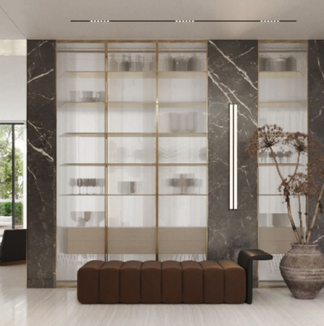 • Премиальные материалы: керамогранит «под мрамор», LED-подсветка, деревянные декоративные элементы