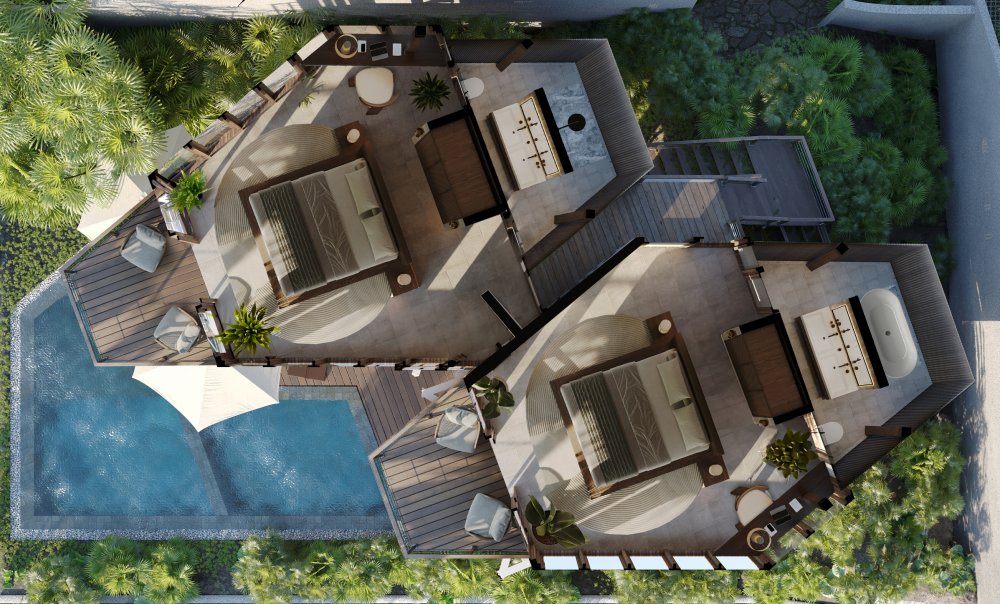 Комплекс включает 10 вилл: 4 односспальные и 6 двуспальных вилл, каждая с индивидуальным бассейном.