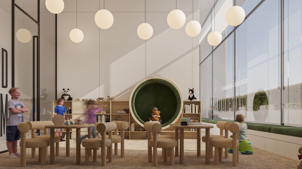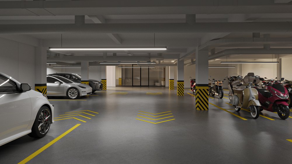 Развитая инфраструктура: общественный бассейн, фитнес-центр, зона для йоги, коворкинг, детская площадка, подземная парковка.