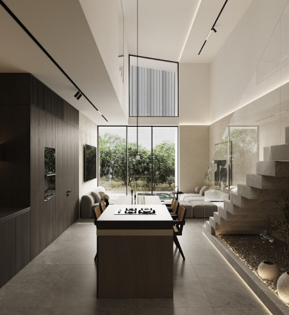 Виллы оборудованы современной кухней, гостиной и зонами отдыха.