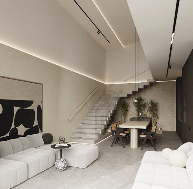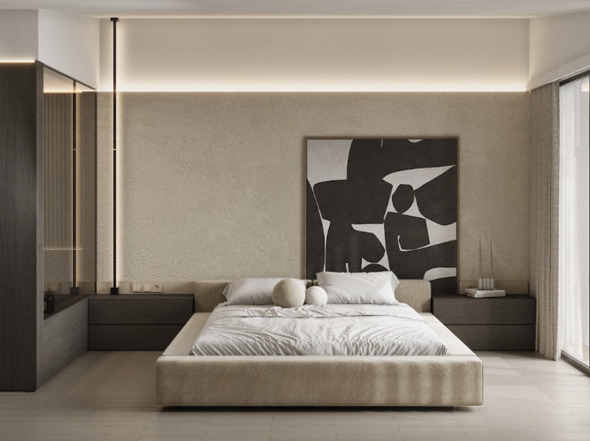 Высокие потолки, большие окна и нейтральная палитра создают ощущение простора.