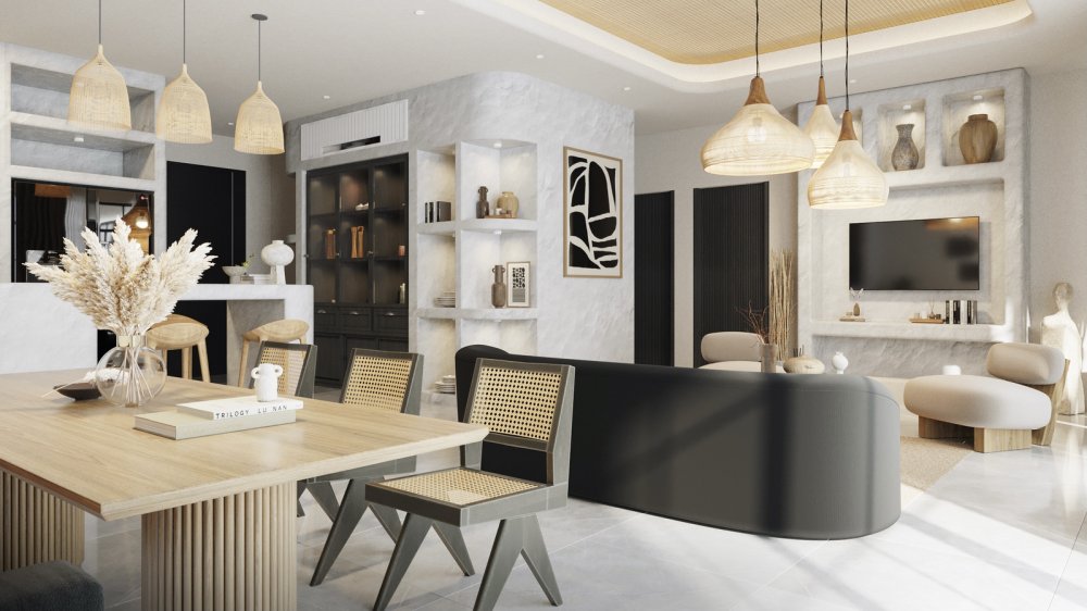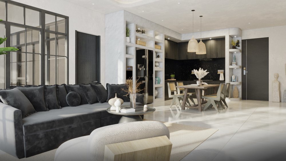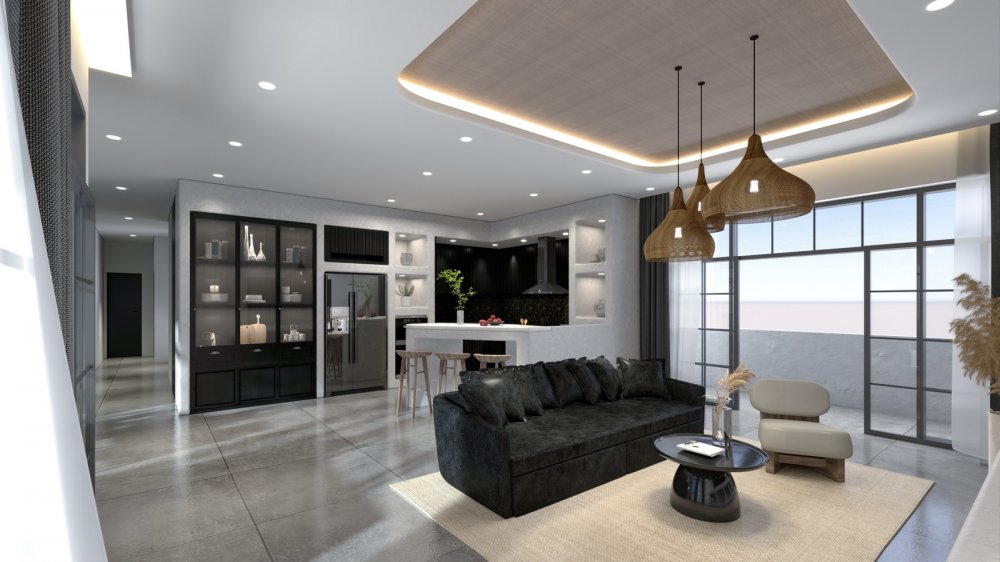— Панорамные окна и стильный минималистичный дизайн интерьеров,