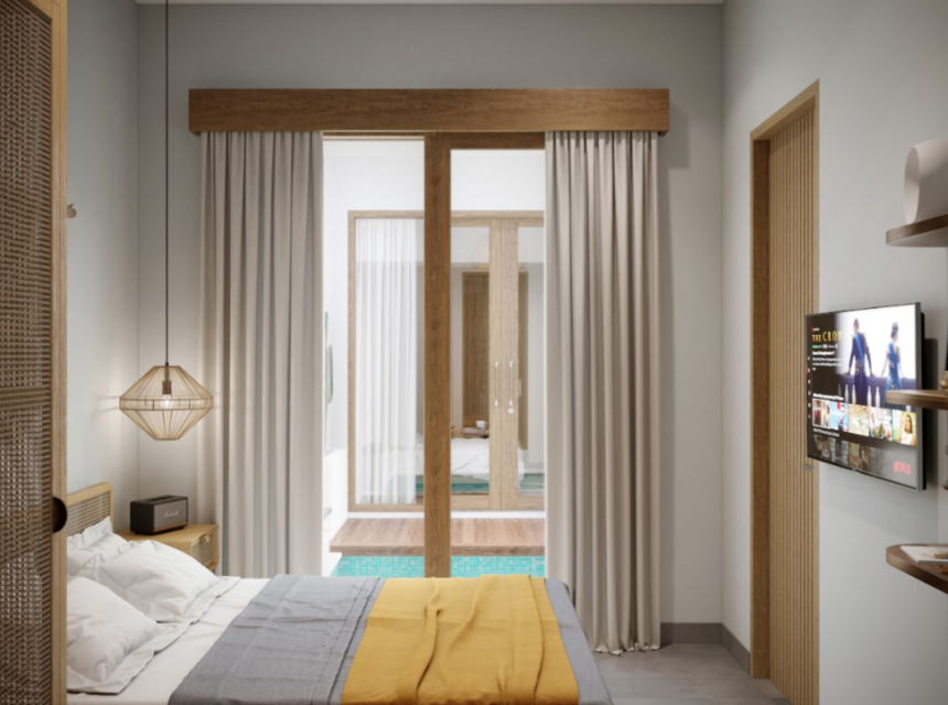 Комплекс включает 34 виллы с индивидуальными бассейнами и мебелью премиального качества.
