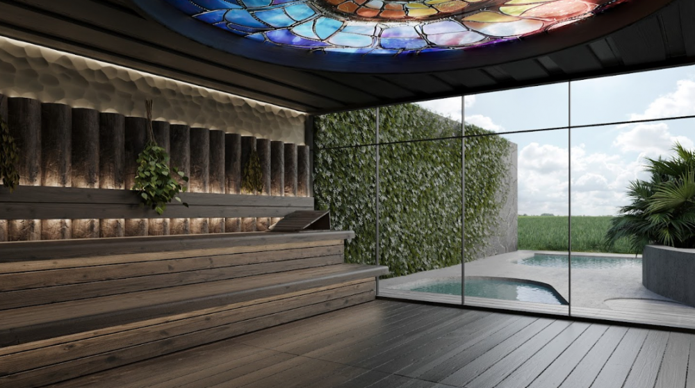 ● Инфраструктура для релаксации: На территории каждой виллы есть собственный банный комплекс, включающий арома-парную, финскую сауну, турецкий хаммам и баню из сухостойной сосны Кело.