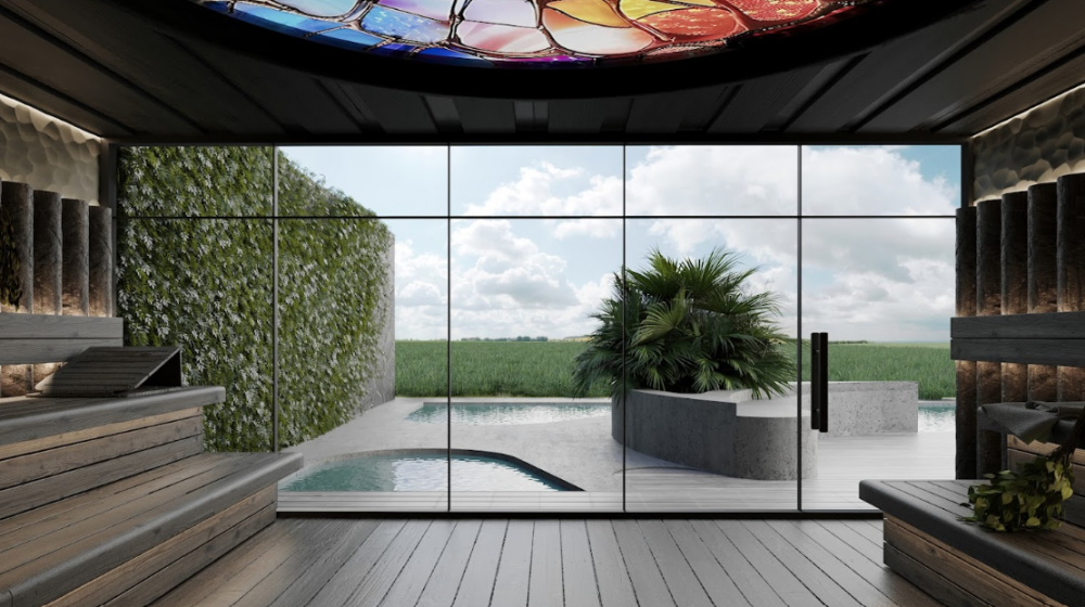 ● Инфраструктура для релаксации: На территории каждой виллы есть собственный банный комплекс, включающий арома-парную, финскую сауну, турецкий хаммам и баню из сухостойной сосны Кело.