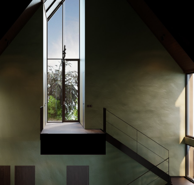— высокие потолки и панорамные окна создают эффект открытого пространства и наполняют дом естественным светом,