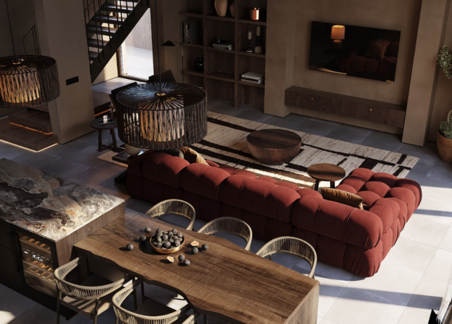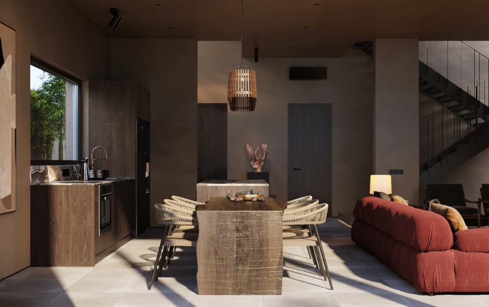 — декоративные элементы из бетона и металла подчеркивают современный характер пространства.