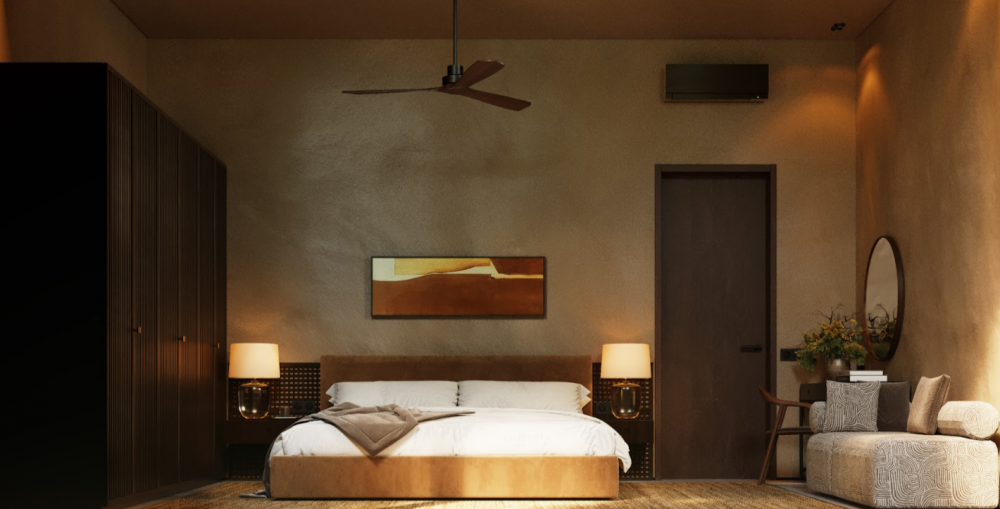 — интерьер оформлен в спокойной нейтральной гамме с текстильными акцентами глубоких тонов,