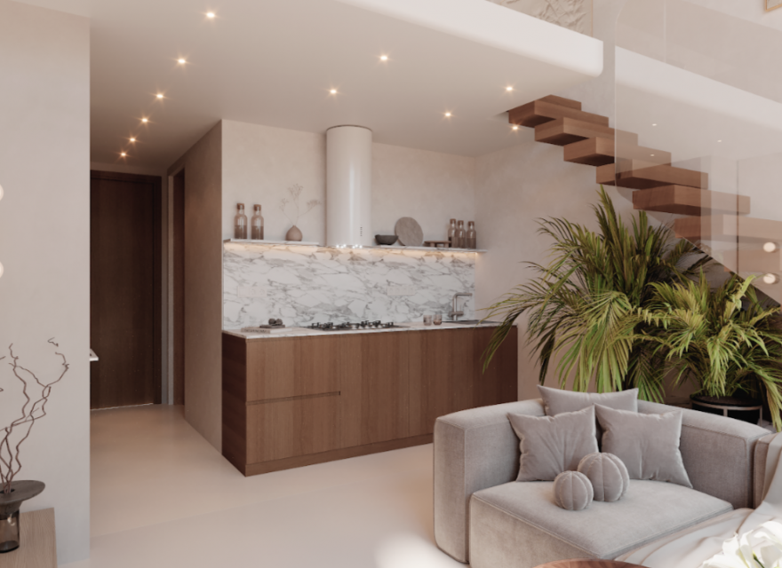 Проект расположен всего в двух минутах ходьбы от океана с пляжем из мягкого жёлтого песка и спокойным морем без волн. Удобная транспортная доступность и близость к основным магистралям позволяют быстро добраться до аэропорта и других ключевых локаций острова.