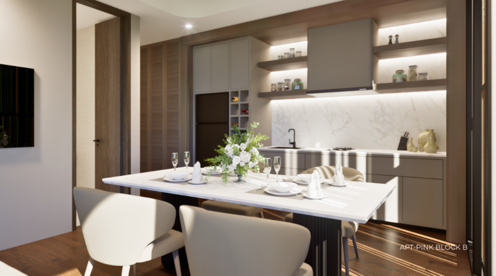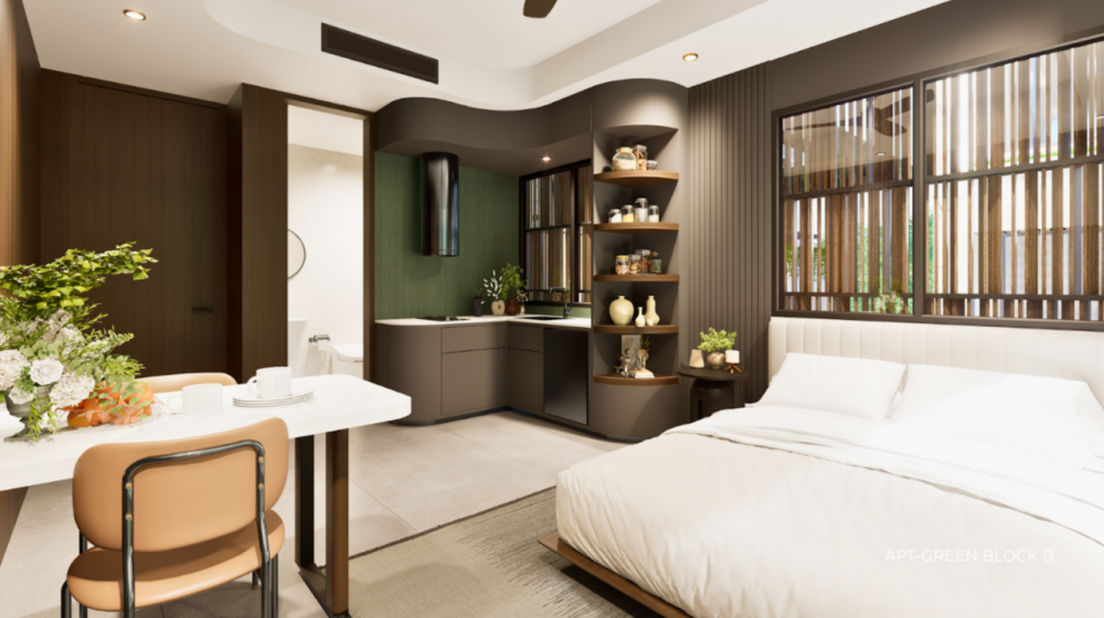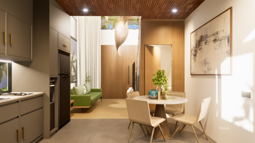 — Апартаменты с 1–2 спальнями, таунхаусы с 1 спальней и виллы с 2 спальнями выполнены в современном дизайне, где сочетаются комфорт и изысканная эстетика.