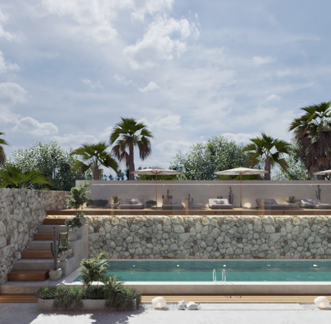 — Инфраструктура комплекса включает бассейн, лобби и публичные террасы.