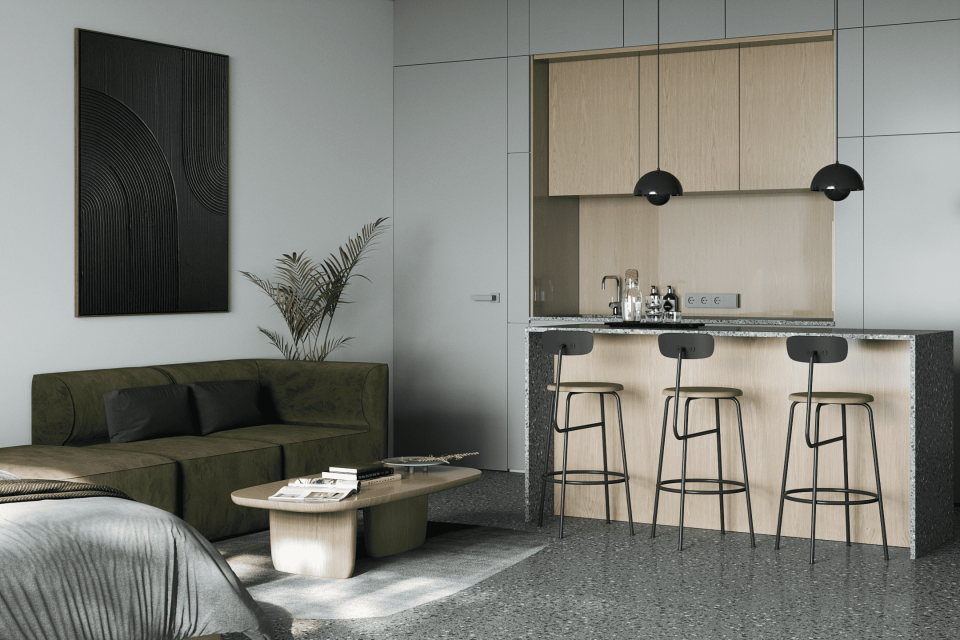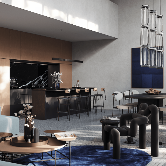 Закрытая клубная территория (3,600 м²) с круглосуточной охраной, бассейном, спортивной зоной, высококлассным рестораном и коворкингом.
