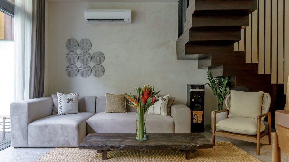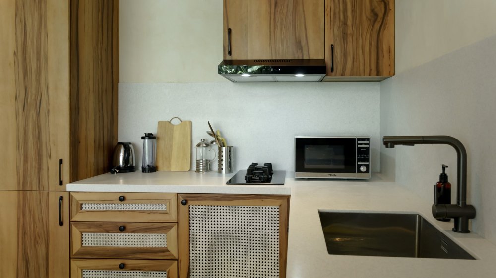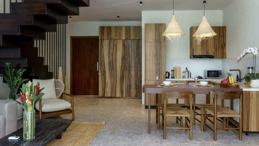 — дизайн вилл оформлен в современном стиле с панорамными окнами, мебелью и техникой от таких брендов как Teak Wood и Grohe.