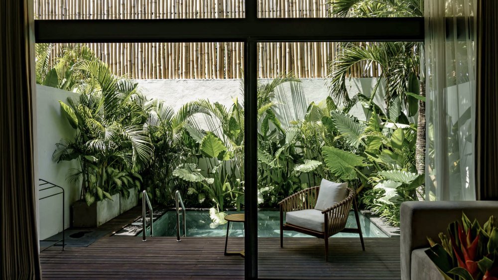 — на территории растут тропические растения и расположен кинотеатр под открытым небом для приятной романтичной атмосферы,