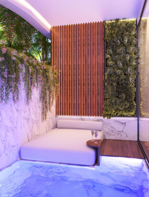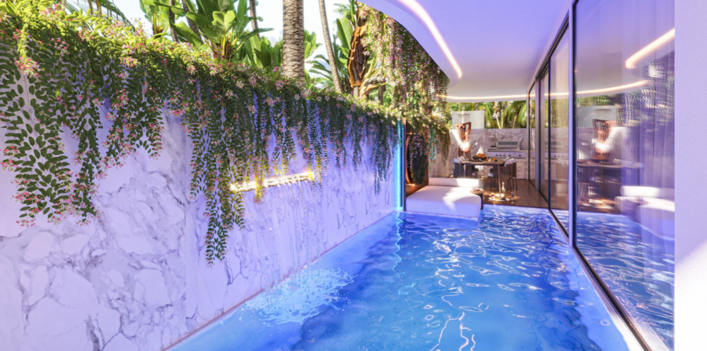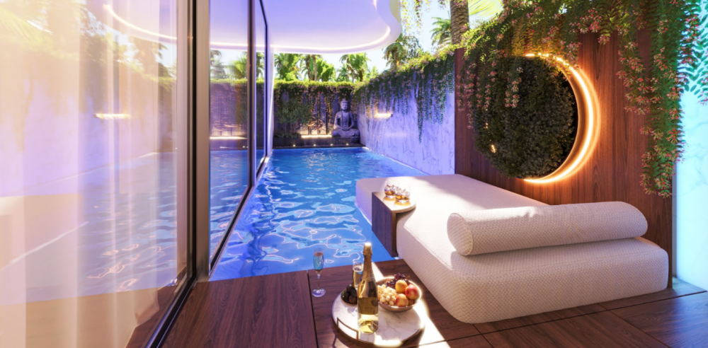 Планировки 1- и 2-комнатных апартаментов с личным бассейном во внутреннем дворе или террасой с джакузи.