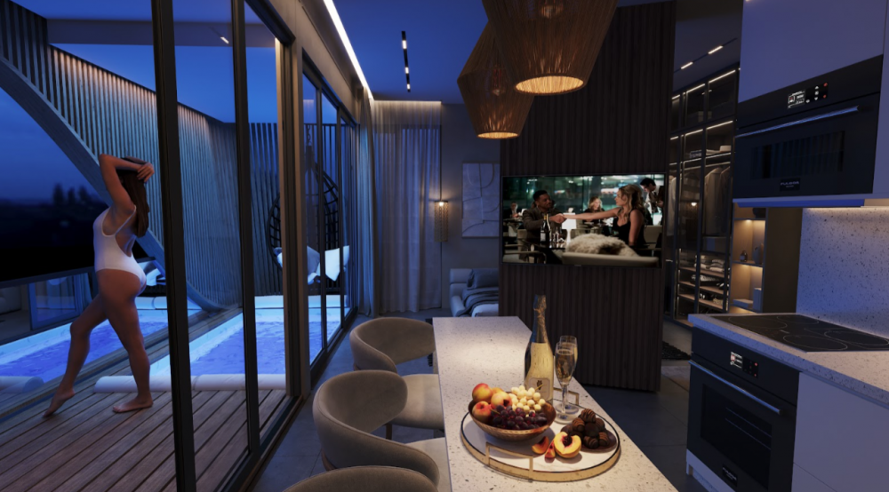 Инфинити-бассейн на крыше (10×4 м) с панорамным видом.