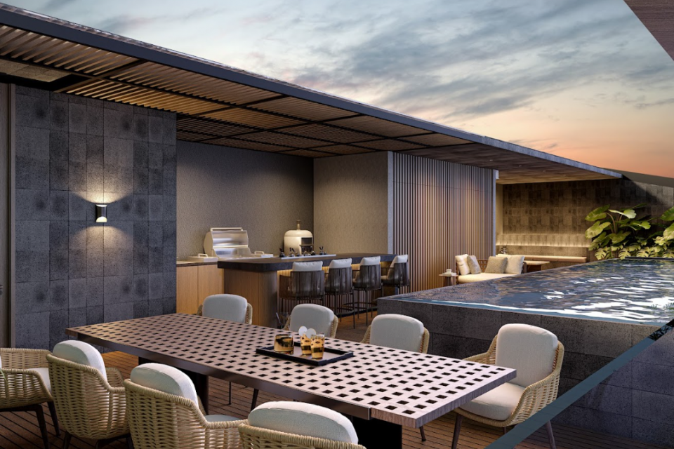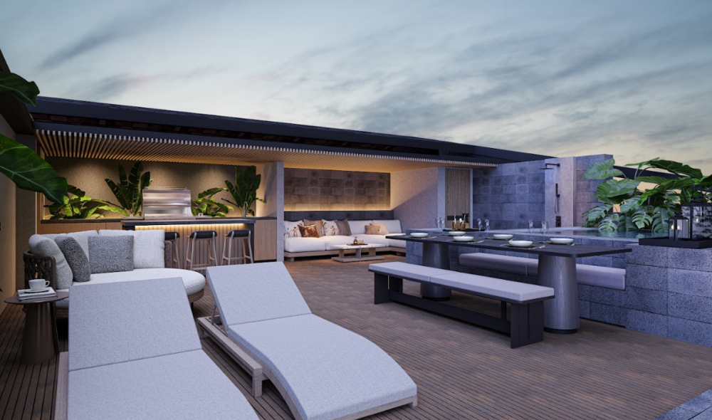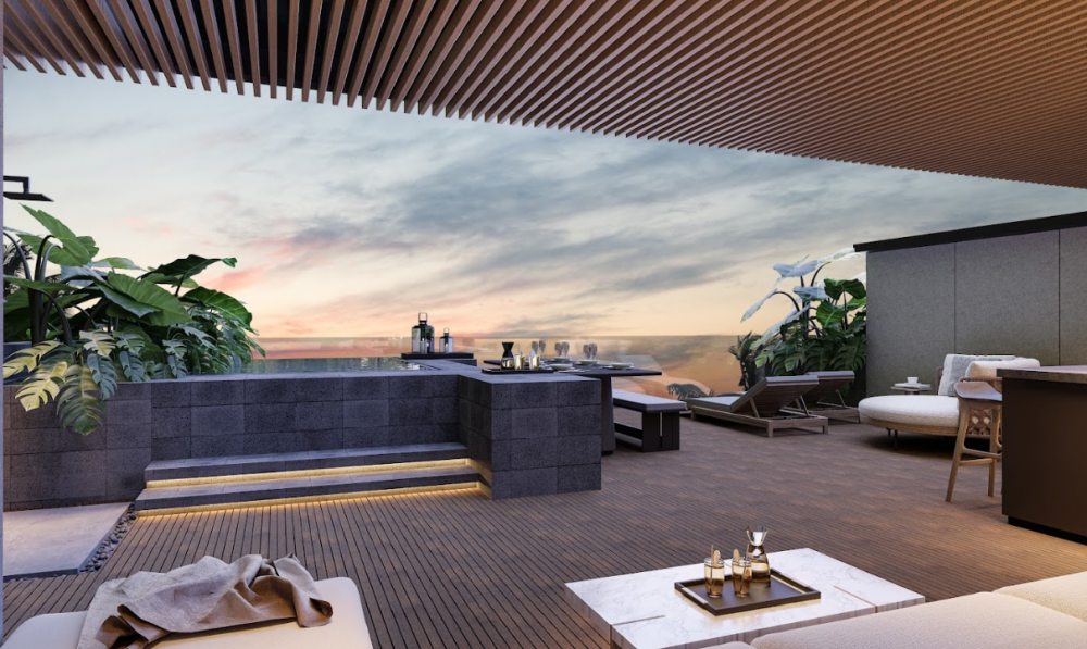 — пентхаусы с 1 и 3 спальнями оснащены просторными приватными руфтопами с бассейнами, террасами, джакузи и панорамными видами,