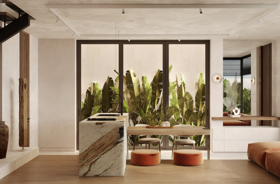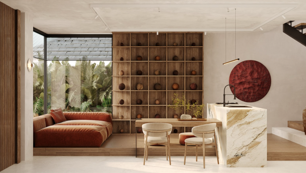 — продуманное зонирование интерьера с гармоничной связью между формами и декором.